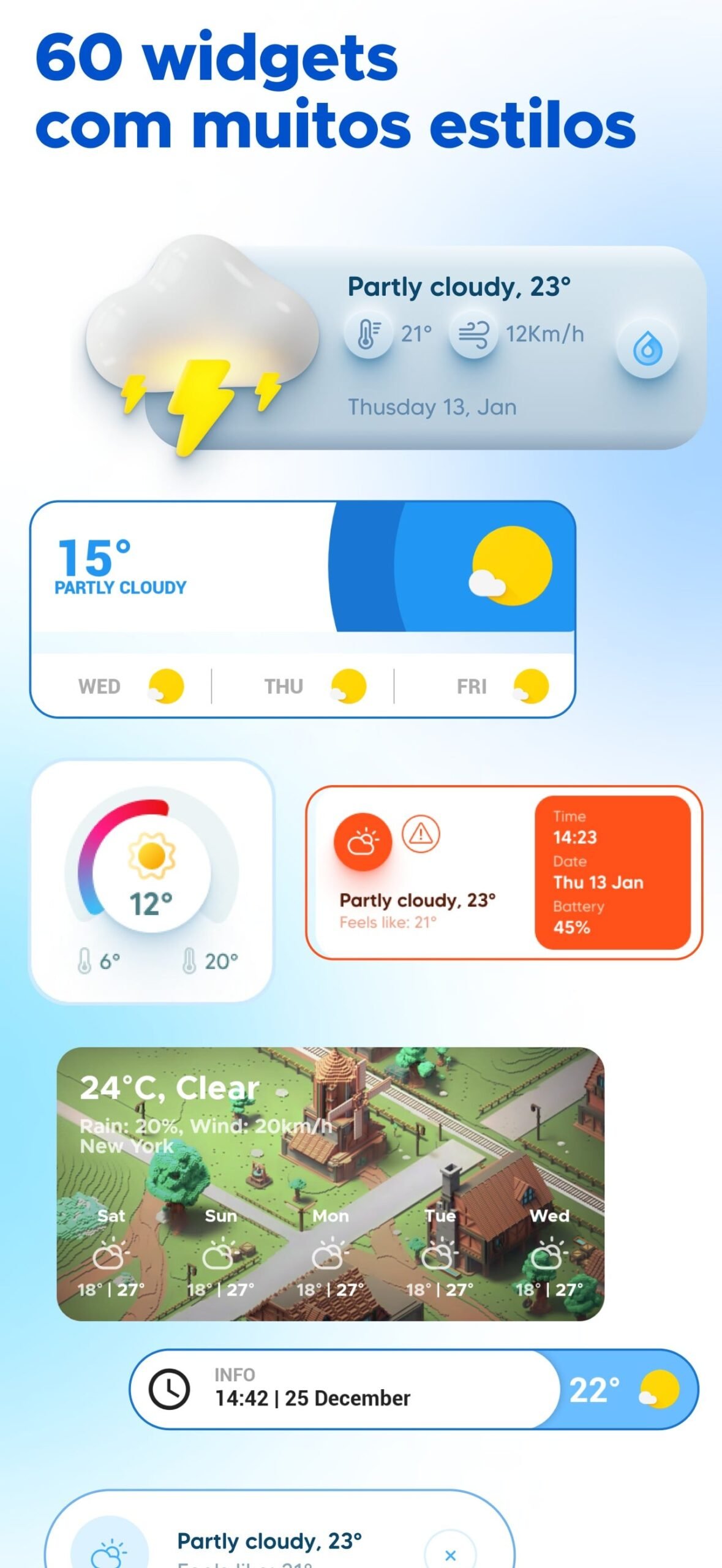 La característica más destacada de Overdrop Weather es su impresionante colección de widgets personalizables. Con más de 50 diseños diferentes, la app te permite mostrar la hora, la fecha, el clima y el estado de la batería directamente en tu pantalla de inicio, todo con un estilo minimalista que se integra a la perfección con tu fondo de pantalla. Puedes ajustar los colores, las fuentes y los íconos para crear un widget que sea verdaderamente tuyo.