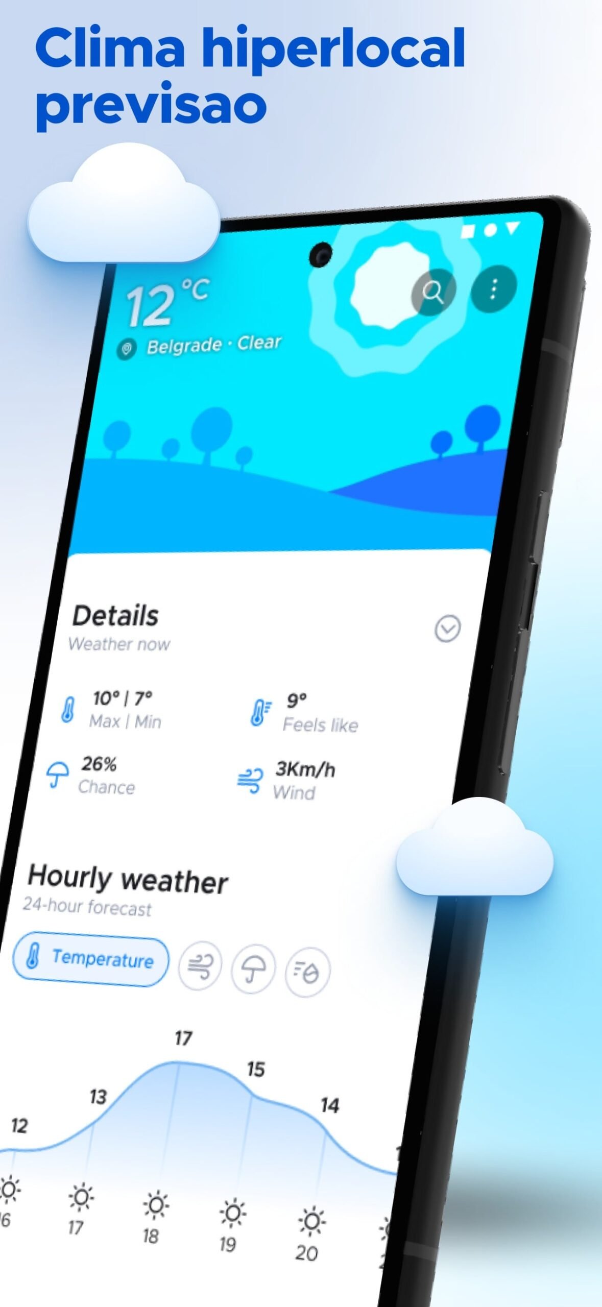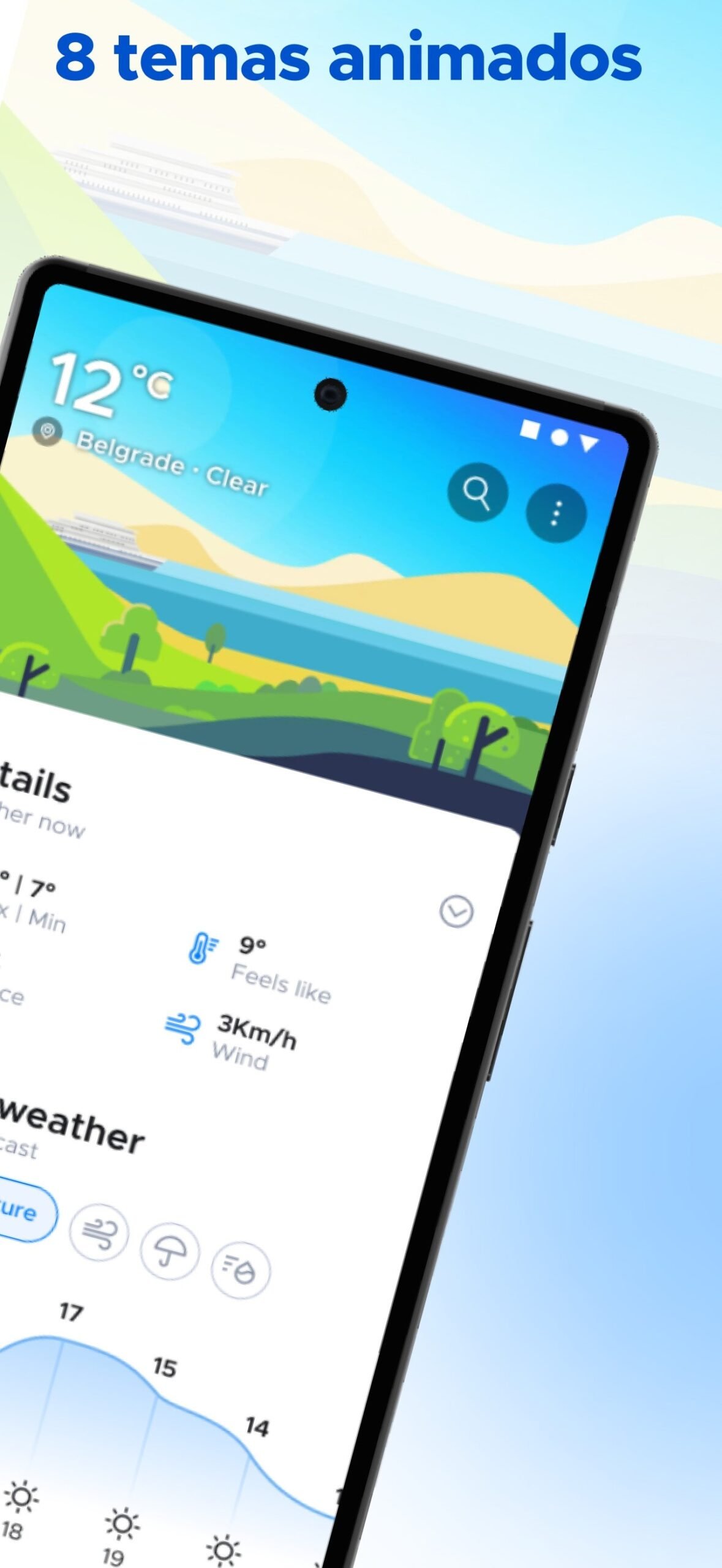 • Animaciones del clima en tiempo real que coinciden con las condiciones actuales.