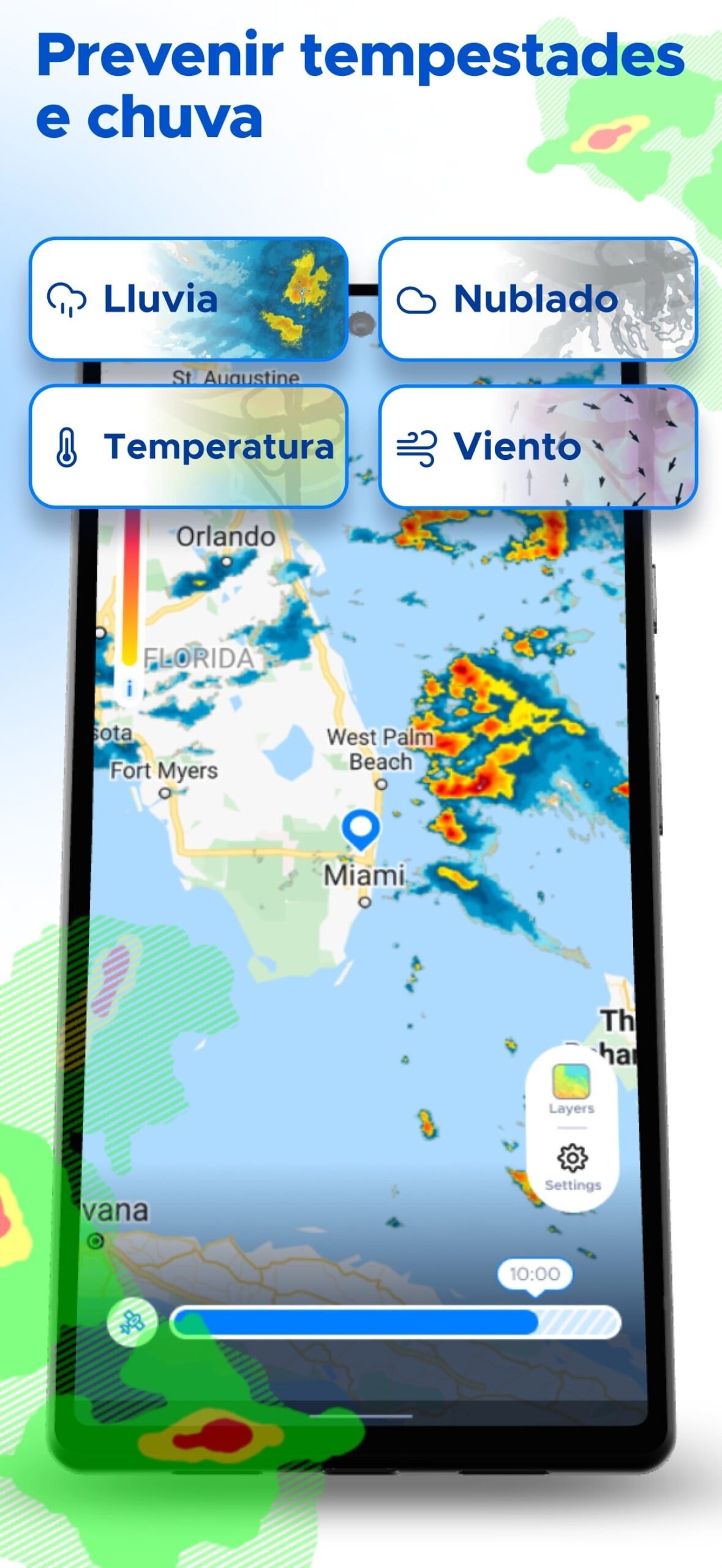 • Alertas de clima severo y notificaciones personalizables.