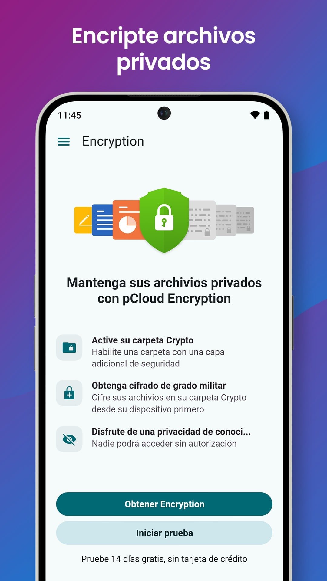 La seguridad es el pilar de pCloud. La aplicación utiliza encriptación TLS/SSL para proteger tus archivos durante la transferencia y el almacenamiento. Además, para los usuarios que buscan la máxima privacidad, pCloud ofrece pCloud Crypto, una función opcional de pago que proporciona encriptación de extremo a extremo. Con esta herramienta, solo tú tienes la clave para descifrar tus archivos, lo que asegura que tu información confidencial esté completamente fuera del alcance de terceros.